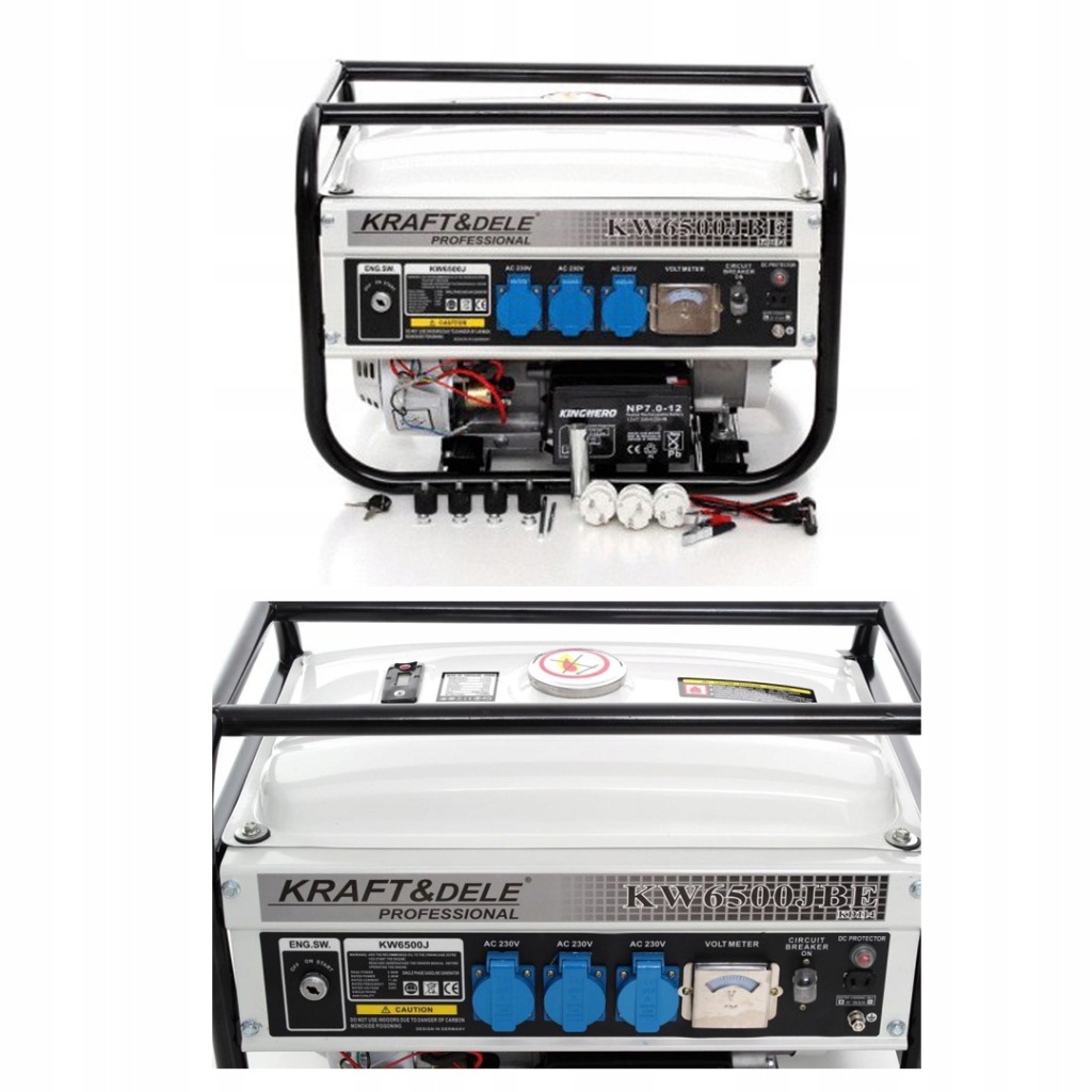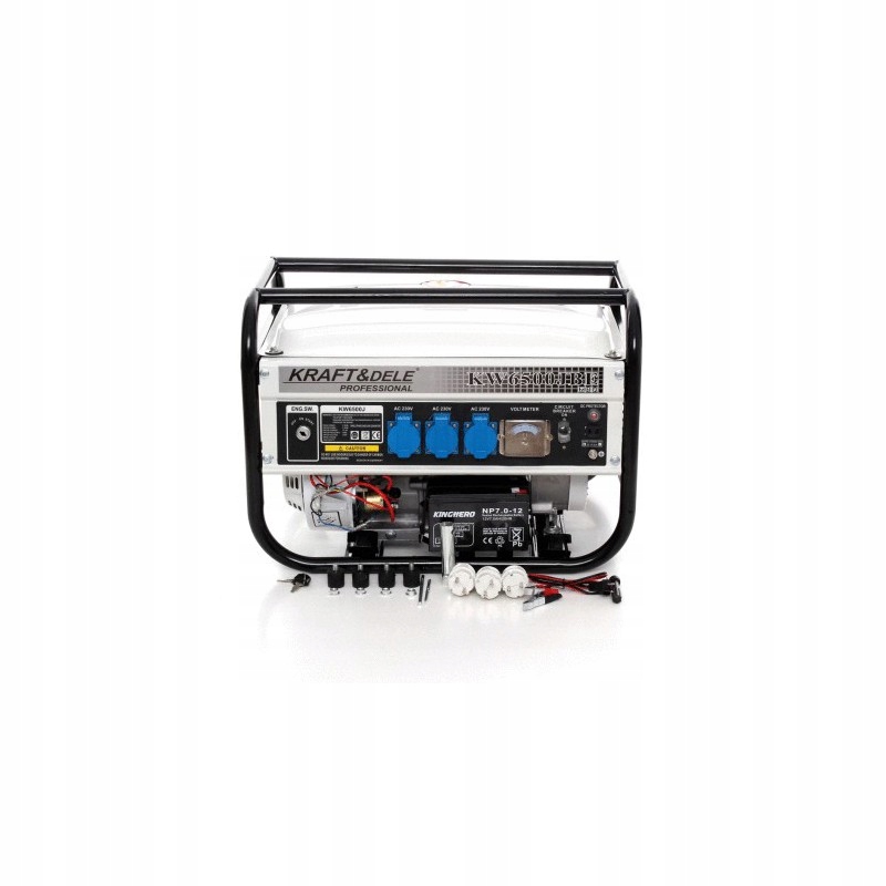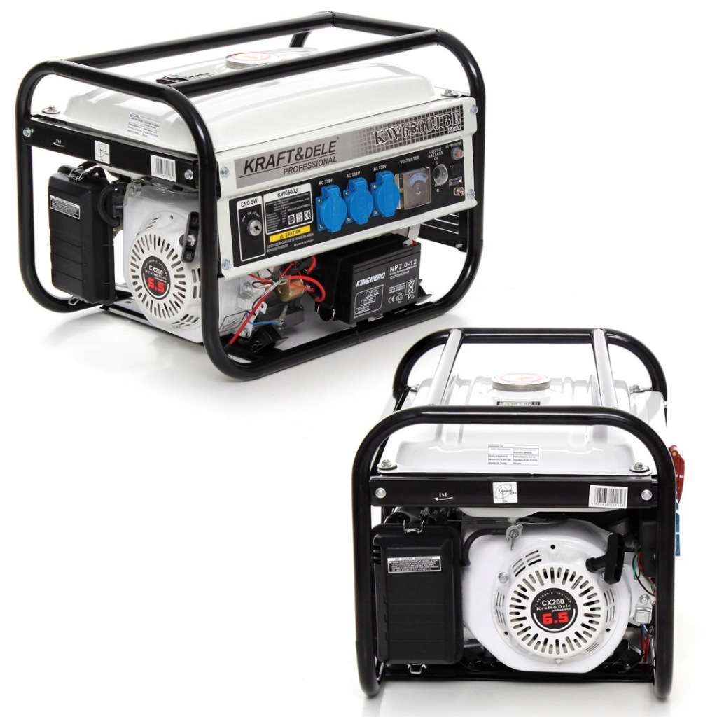 портативний однофазний генератор Kd114 польської марки Kraft&Dele призначений для генерації змінного струму 220В-230В за допомогою двигуна внутрішнього згоряння японської конструкції OHV 4-тактного потужністю 6,5 к.с. і генератора 2200 Вт.