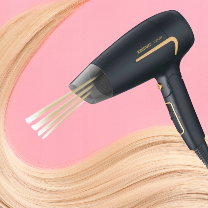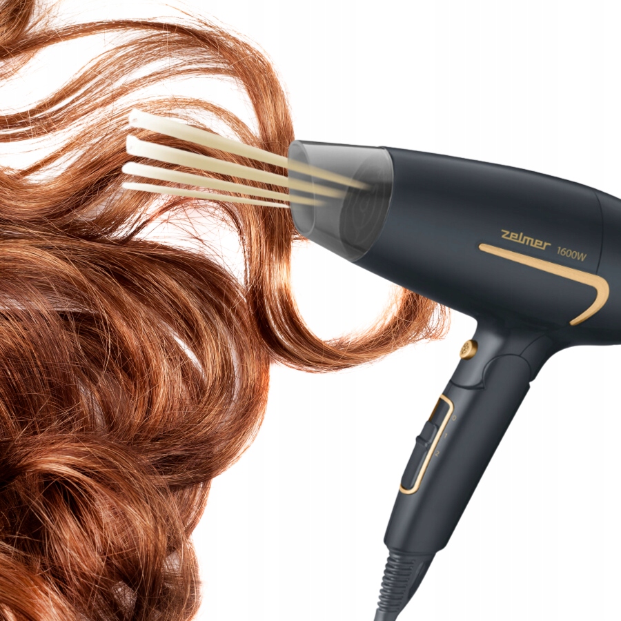 у комплекті з феном Zelmer ZHD8321 ви знайдете концентратор, який дозволяє сфокусувати потік повітря на обраних ділянках волосся, що значно спрощує укладання. Завдяки цій функції ви можете швидко і ефективно висушити навіть густе волосся, створюючи гладкі зачіски з точною обробкою.