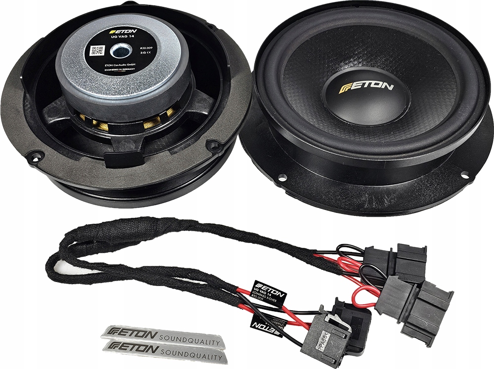 ETON UG VAG 14 - високоякісні середньочастотні динаміки 145 мм / 6 дюймів, сумісні з різними моделями VW (VW Golf 6, Golf 8, T6.1, Polo V і т.д.), готові автомобільні динаміки plug & amp; play для установки в двері.