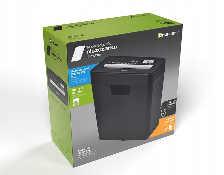 подрібнювач Tracer Edgy 10L - це не тільки офісний інструмент, це також гарантія безпеки і комфорту користувача. Завдяки їй ви легко подбаєте про свою конфіденційність, швидко і ефективно знищуючи документи і кредитні карти.