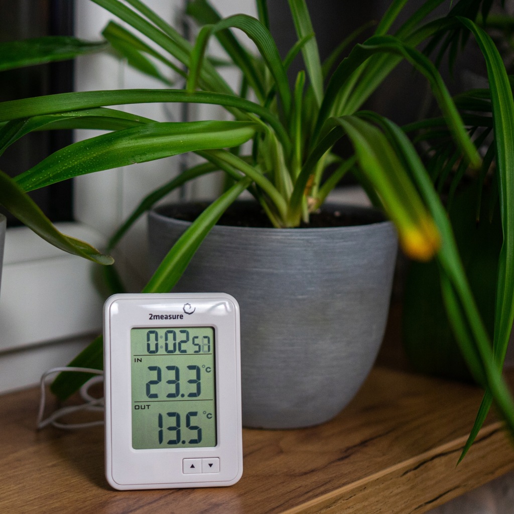 щоденне зчитування температури в нашому середовищі надзвичайно важливо, особливо коли для вас важливо ваше здоровʼя і здоровʼя всієї вашої родини. Пристрій з нашого асортименту у вигляді білого, невеликого розміру електронного термометра з годинником дозволить вам постійно контролювати зміни температури навколишнього середовища як в приміщенні, так і на вулиці! Завдяки зонду довжиною 1,4 м-ви без проблем будете вимірювати за вікном, на балконі або терасі. Вбудована ніжка пристрою дозволить вам встановити термометр на підвіконні, тумбочці або на столі. Легко зчитуйте температуру як в градусах ° c, так і ° F. налаштуйте пристрій відповідно до ваших уподобань і відобразіть поточний час в 12 - або 24-годинному режимі. Ніколи не одягайтеся занадто легко і ніколи не запізнюйтесь! Все це можливо, якщо у вашому будинку немає електронного термометра!