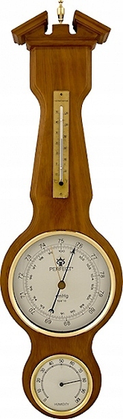 аналогова метеостанція у великому деревʼяному корпусі, що має: термометр місцевої температури в oC і вологомір з можливістю калібрування годинник з поточним механізмом (батарея в комплекті) барометр з можливістю калібрування і індикатор зміни атмосферного тиску.