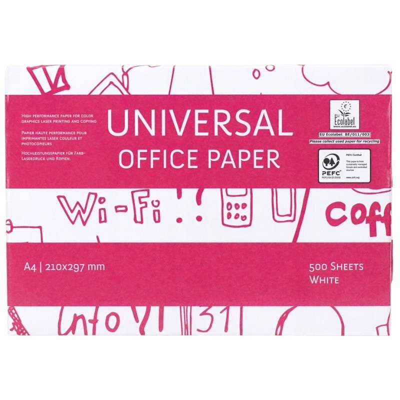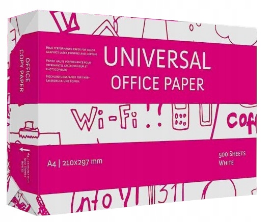 Universal - це фотокопіювальний папір високої якості, призначений для лазерного друку і копіювання, а також чорно-білого і кольорового друку .ксерокс A4 Universal ідеально підходить для повсякденного використання в офісі.