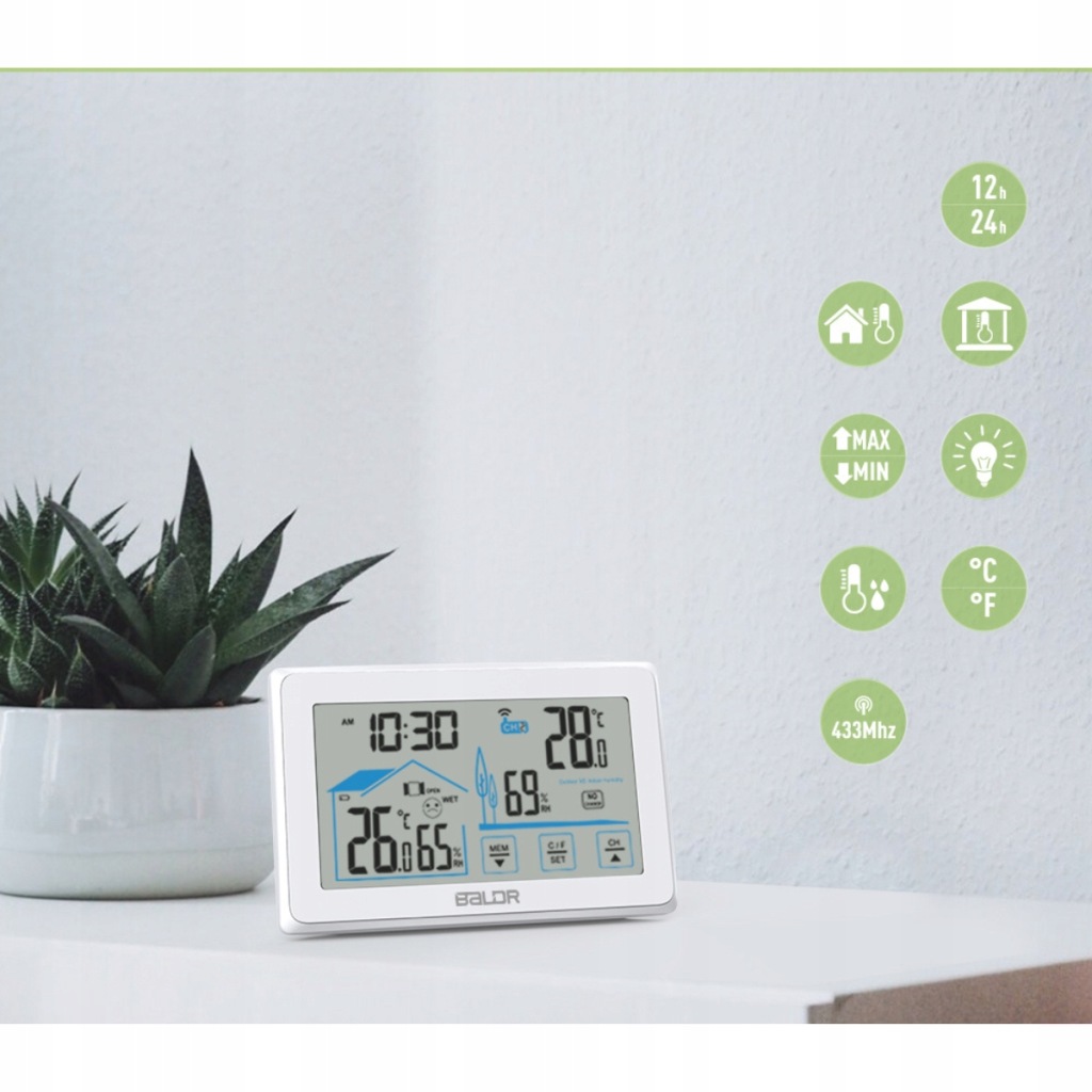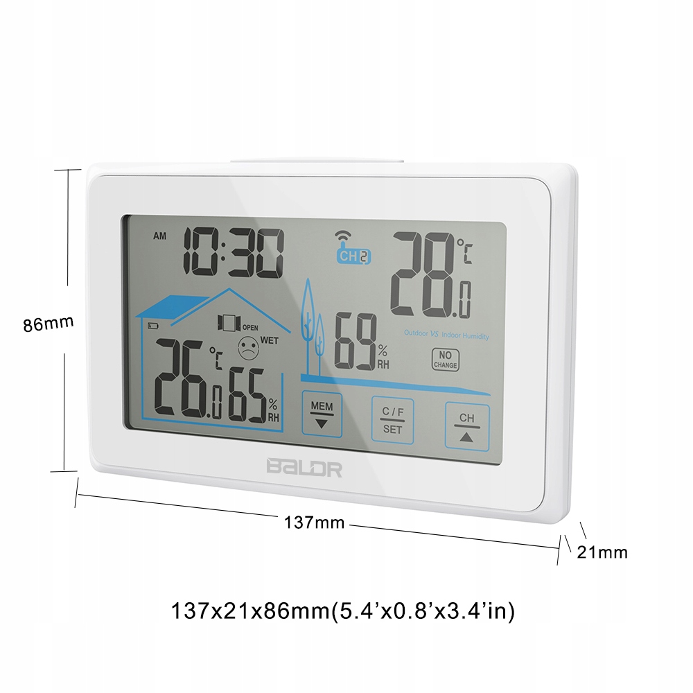 бездротова метеостанція Baldr b0340 з сенсорними кнопками - це сучасний прилад для вимірювання температури і вологості, як в приміщенні, так і на вулиці.