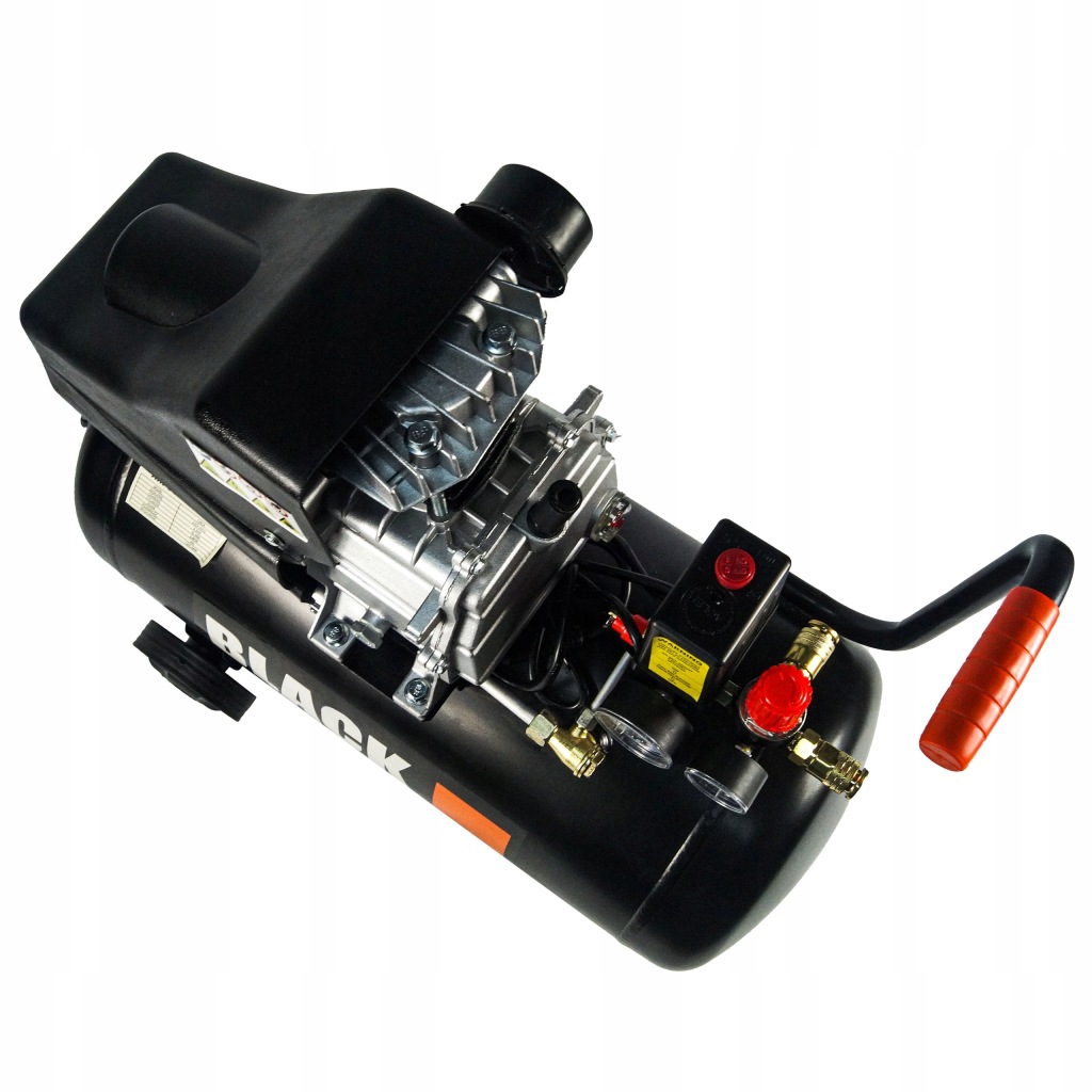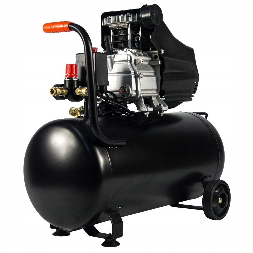 - компресор 50л, компресор виготовлений з високоякісних матеріалів і компонентів, має m.in більш потужний двигун, посилений циліндр і конструкція. Він, серед іншого, оснащений надійною металевою ручкою-ручкою для транспортування, набагато міцнішою, ніж пластикові ручки, які непрактичні і не довговічні.