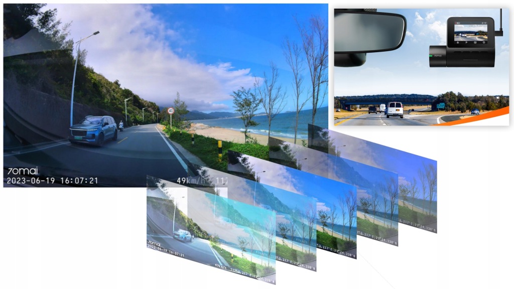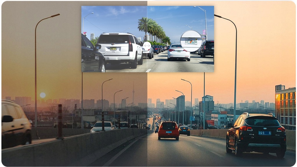 - Функція селективної обробки зображень дозволяє автомобільній камері ефективно ідентифікувати і посилювати життєво важливі елементи запису, такі як номерні знаки і дорожні знаки. Водночас він обмежує видимість непотрібних обʼєктів у навколишньому середовищі, наприклад дерев біля дороги. Завдяки цій функції відеореєстратор 70mai A200 може легше аналізувати і записувати важливі деталі на дорозі.