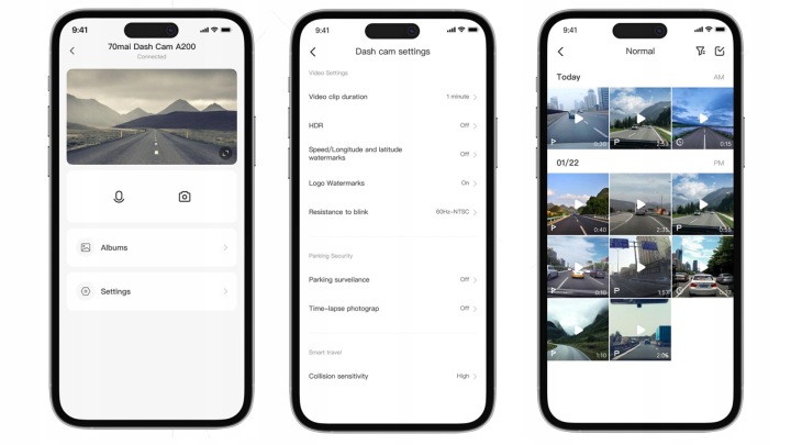 завдяки спеціальному додатку 70mai польською мовою у вас буде можливість керувати часом запису, роздільною здатністю відео, чутливістю G-датчика та іншими параметрами.