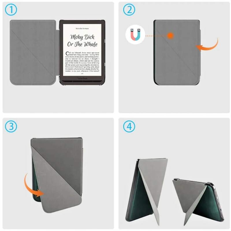 цей чохол ідеально підходить для подорожей і перенесення завдяки компактним розмірам і вазі. Звичайно, чохол пропонує функцію автоматичного засинання / пробудження читача в залежності від того, як ви відкриваєте або закриваєте чохол. Передні пластини можуть повертатися на 360°, що дозволяє зручно тримати корпус в одній руці. Функція автоматичного сну / пробудження продовжує термін служби батареї. Він включає в себе активацію або переведення пристрою в сплячий режим в залежності від того, відкритий або закритий чохол.