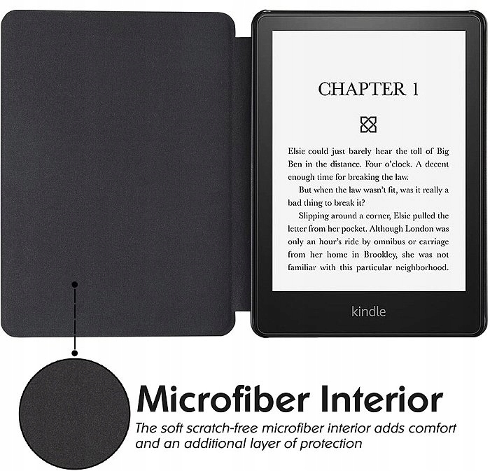захисний чохол для читання книг Amazon Kindle Paperwhite 5 (2021) . Це класичний, перевірений роками чохол типу durable Lock. Таким чином, ви можете зафіксувати зчитувач в пластиковій ванні і магнітно закрити упаковку . Упаковка пропонує вирізи для всіх елементів керування (кнопка запуску, розʼєм, світлодіод). Матеріал штучна шкіра з обробкою. Корпус зроблений не з гладкої шкіри,а з мʼяко текстурованою. Матеріал внутрішніх панелей замша , що робить його зручним для відображення. Чохол має функцію автоматичного засипання/пробудження в залежності від того, як ви відкриваєте або закриваєте чохол. Також для покоління Paperwhite 5 ми пропонуємо чохол з логотипом KINDLE. Перевагою корпусу є невелика вага, але в той же час надійне виконання завдяки пластиковій ванні.