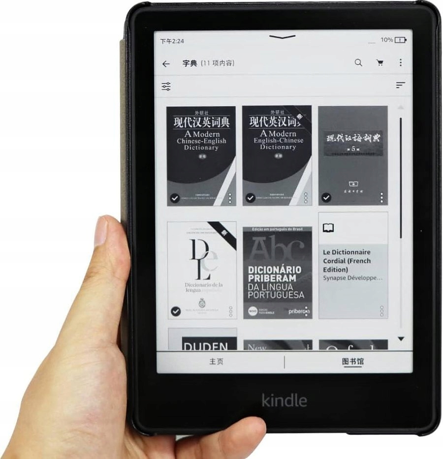 захисний чохол для читання книг Amazon Kindle Paperwhite 5 (2021) . Це класичний, перевірений роками чохол типу durable Lock. Таким чином, ви можете зафіксувати зчитувач в пластиковій ванні і магнітно закрити упаковку . Упаковка пропонує вирізи для всіх елементів керування (кнопка запуску, розʼєм, світлодіод). Матеріал штучна шкіра з обробкою. Корпус зроблений не з гладкої шкіри,а з мʼяко текстурованою. Матеріал внутрішніх панелей замша , що робить його зручним для відображення. Чохол має функцію автоматичного засипання/пробудження в залежності від того, як ви відкриваєте або закриваєте чохол. Також для покоління Paperwhite 5 ми пропонуємо чохол з логотипом KINDLE. Перевагою корпусу є невелика вага, але в той же час надійне виконання завдяки пластиковій ванні.