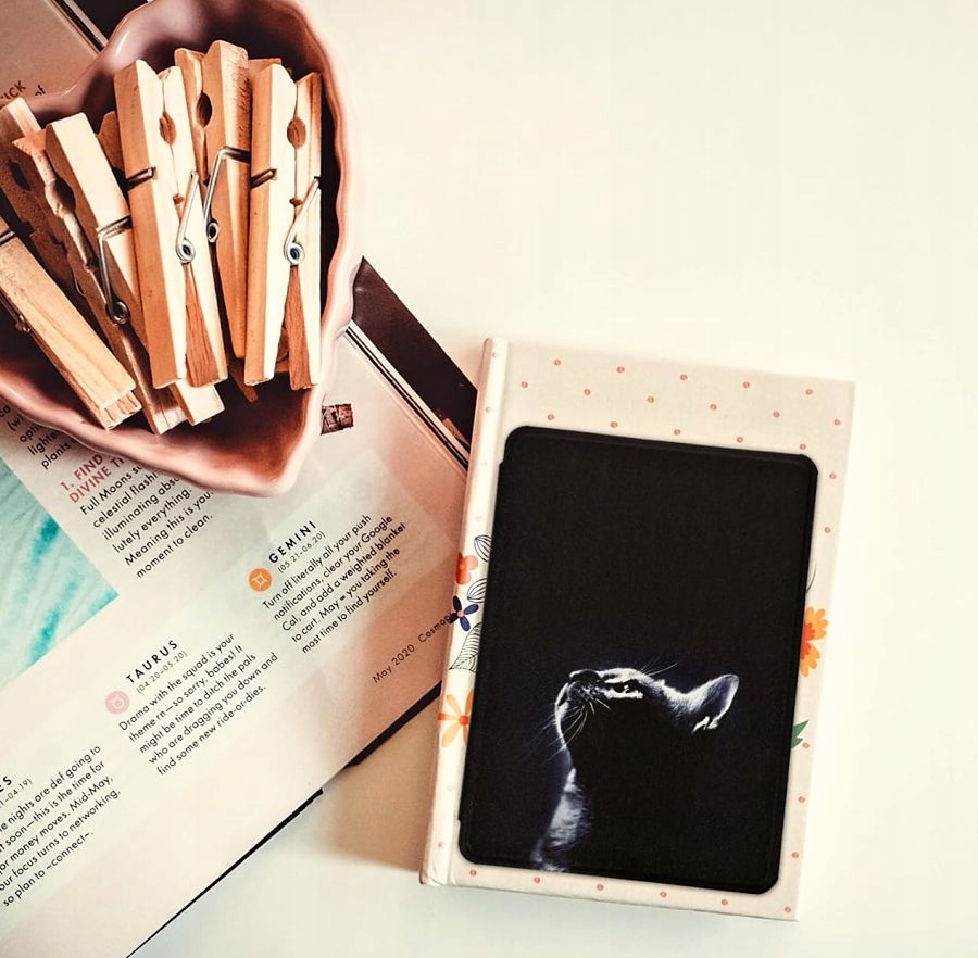 чохол маємагнітне закриття . Габаритні розміри і вага дуже компактні і майже точно копіюють розміри читача. Звичайно, чохол пропонує функцію автоматичного засинання / пробудження читача в залежності від того, як ви відкриваєте або закриваєте чохол. Передні пластини можуть повертатися на 360°, що дозволяє зручно тримати корпус в одній руці. Чохол барвистий, з повним друком, тема Black Cat, з тонкою обробкою. Доступний широкий вибір інших колірних варіантів.
