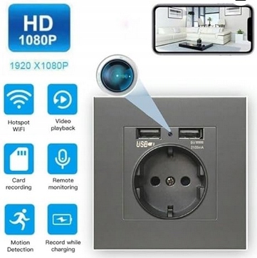 ПРИХОВАНА ШПИГУНСЬКА КАМЕРА В РОЗЕТЦІ WIFI USB 2.1 A СІРИЙ