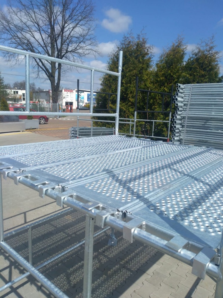 сталева платформа для будівельних лісівВаршавського . Міцна оцинкована платформа зі сталі з допустимим навантаженням 300 кг/м2.