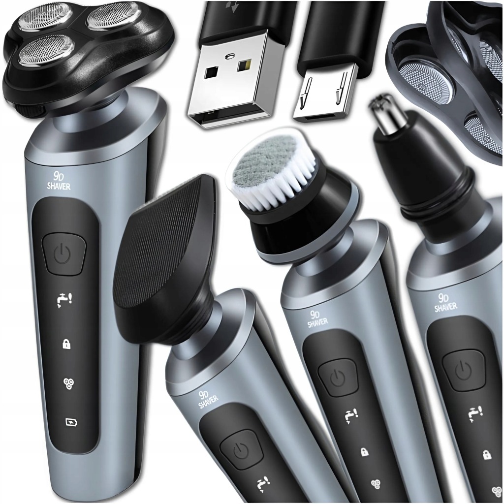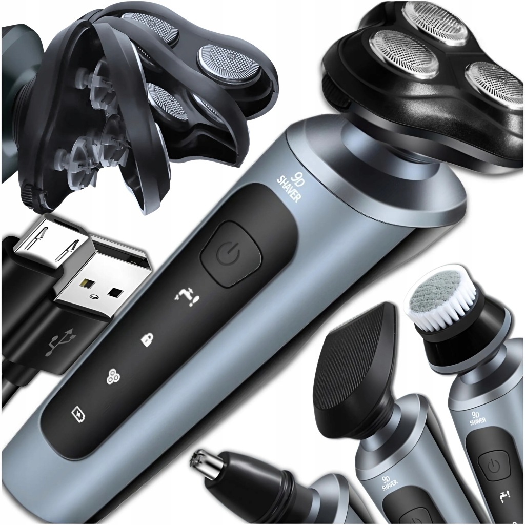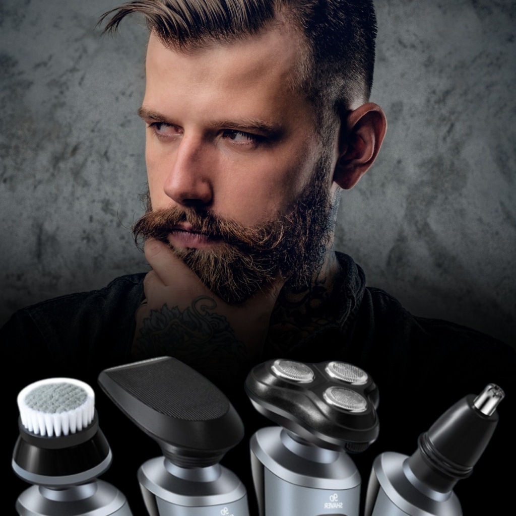 ✅ багатофункціональність 4в1 – бритва оснащена додатковими головками: перукарський тример для моделювання бороди, тример для носа і класична бритвене головка, що робить її універсальним пристроєм для комплексного догляду.