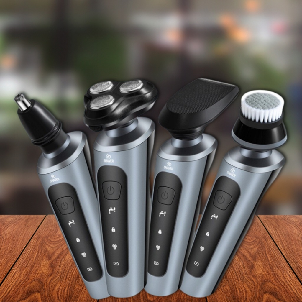 наша бритва 4в1 оснащена 3 плаваючими головками , які забезпечують комфортне гоління навіть у важкодоступних місцях. Крім того, в комплект входить головка перукарського тримера і тример для носа, що робить пристрій універсальним і ідеальним для догляду за головою, бородою і особою.