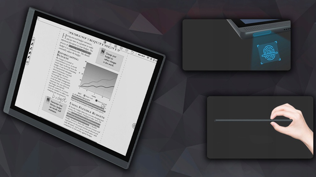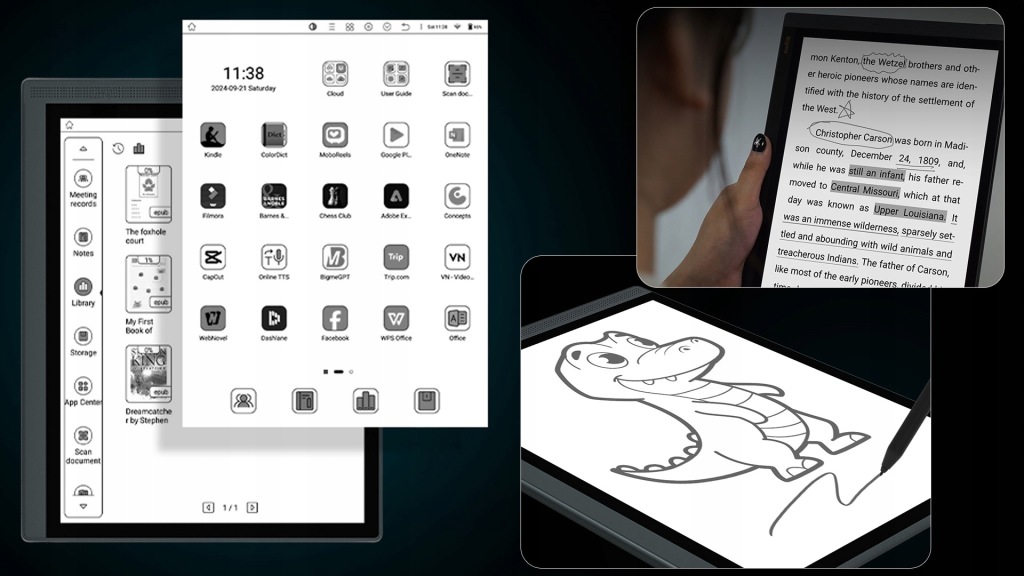 10,3" чорно-білий сенсорний дисплейз високою роздільною здатністю 2480x1860 пікселів і 300 ppi забезпечує чітке зображення і природний вигляд тексту, схожий на традиційну книгу.технологія E-Ink мінімізує навантаження на очі під час тривалих сеансів читання.