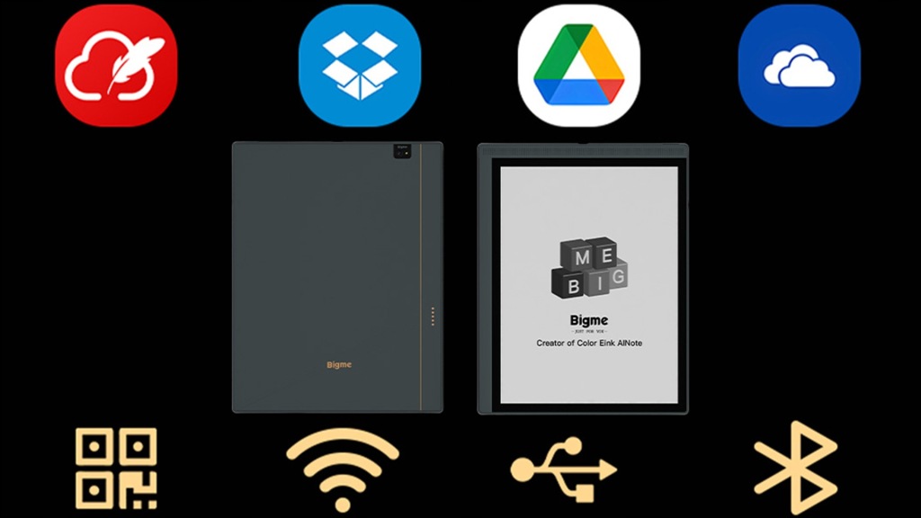 Bigme b1051 пропонує стабільне зʼєднання Wi-Fi 2.4 G/5G і Bluetooth 5.0 для бездротової передачі файлів, синхронізації з іншими пристроями і використання онлайн - хмарних функцій, підтримуючи такі платформи, як Bigme Cloud, Google Drive, Dropbox і Microsoft OneDrive. Завдяки вбудованій камері він підтримує читання QR-кодів.