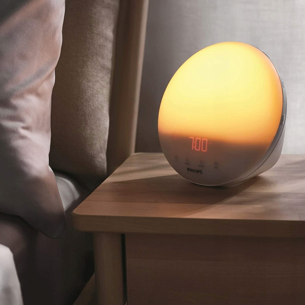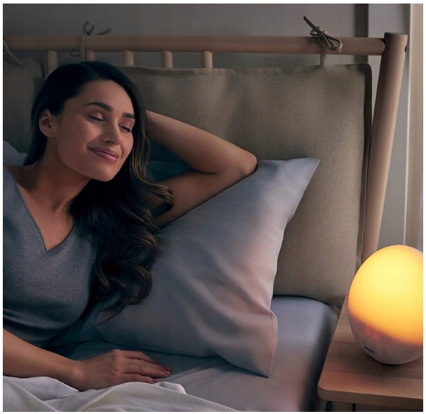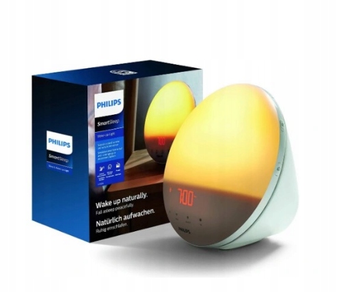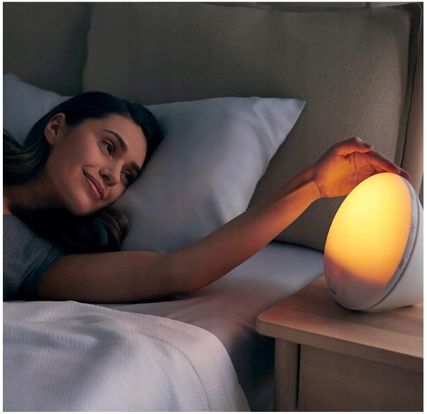 Натхненний сходом сонця в природі, інтенсивність світла збільшується протягом 30 хвилин від ранкового червоного до оранжевого до яскраво-жовтого світла. Ця повільна зміна стимулює організм до природного пробудження. Поряд із світлом, що наповнює кімнату, природний звук, який ви обираєте, підтримує ваш досвід пробудження, щоб Ви були у формі протягом усього дня.