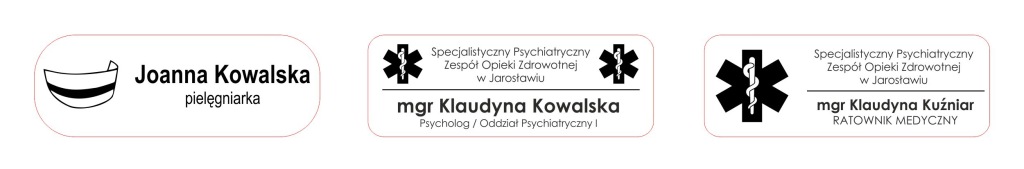 - логотип лікарні разом з даними співробітника np ( Ян Ковальські/фельдшер)