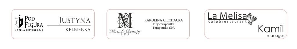 - логотип компанії разом з даними співробітника ( імʼя плюс функція, наприклад, Ян Ковальські/Спеціаліст з продажу)