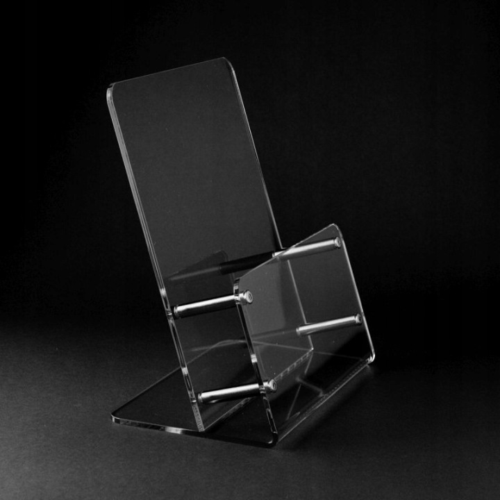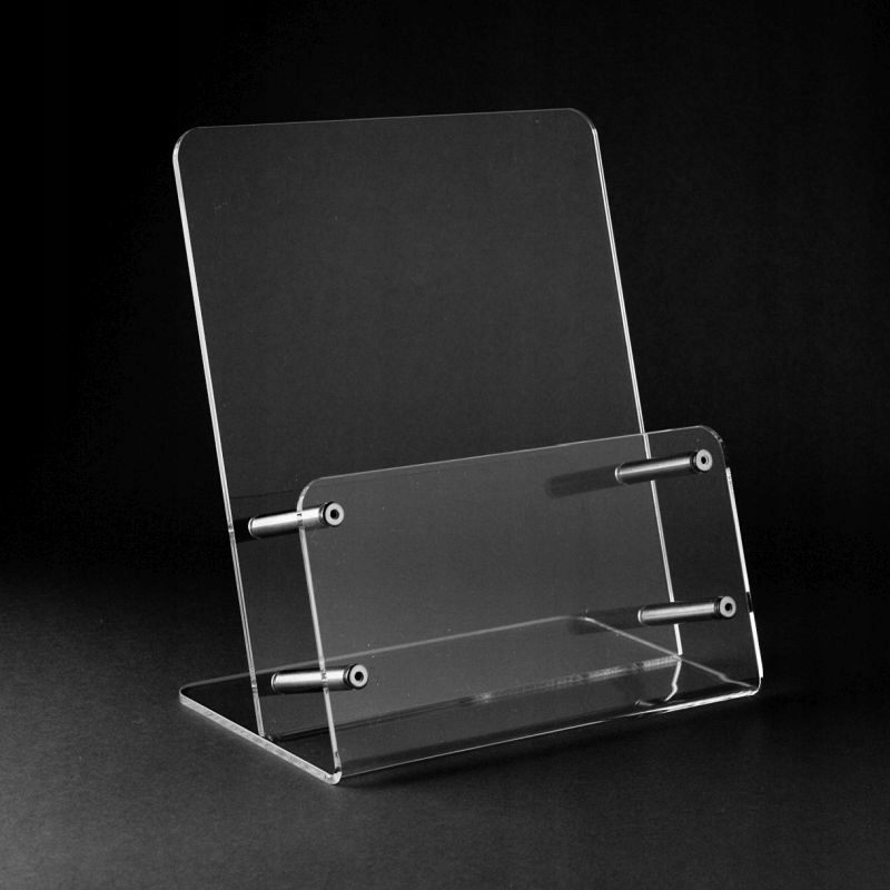 стійки з комбінацією оргскла і анодованого алюмінію дуже елегантні. Використання цих матеріалів також робить стійку стабільною і міцною.