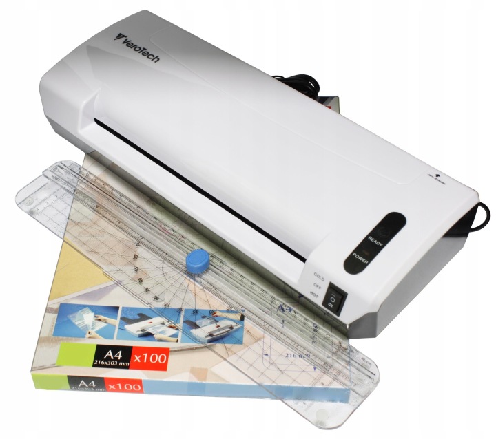 У комплект марки Verotech-3in1 входять ламінатор, тример для паперу і комплект плівки. Ламінатор дозволяє дуже швидко ламінувати як в гарячому, так і в холодному вигляді документи формату А4 і меншого розміру.