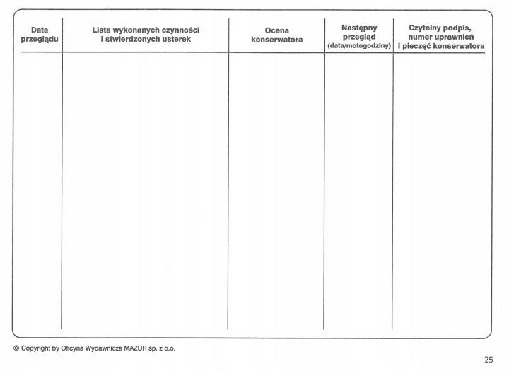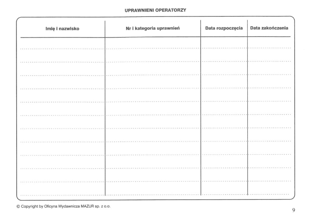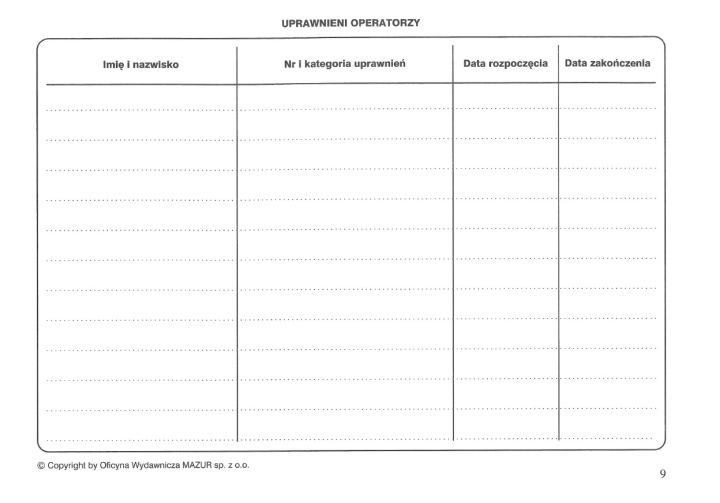 відповідно до правил, журнал технічного обслуговування використовується для запису будь-яких перевірок і ремонту підйомного обладнання типу, наприклад, вилочного навантажувача, козлових кранів, кранів, ліфтів, кранів.
