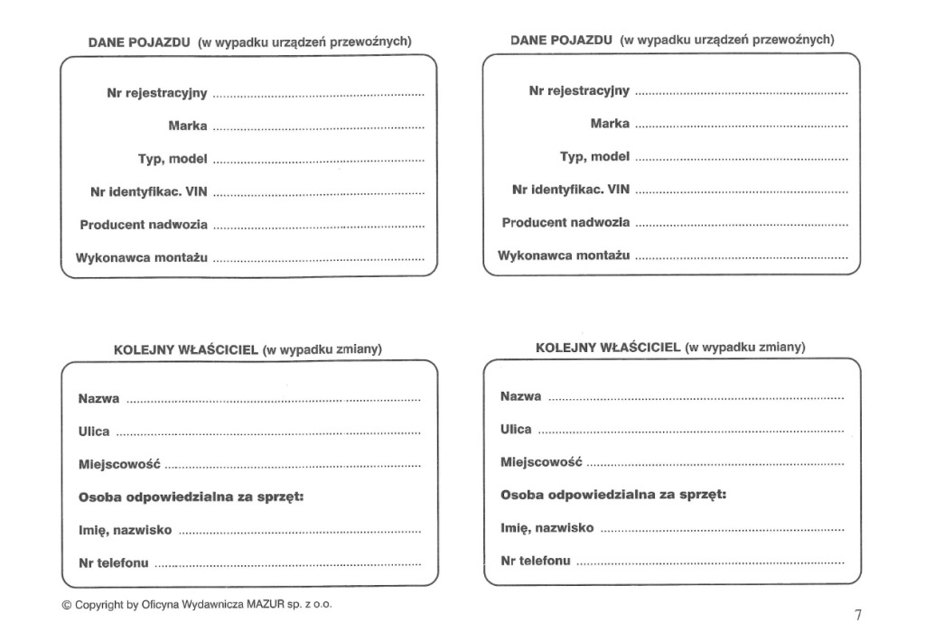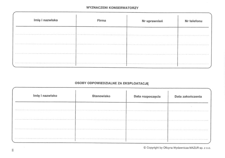 відповідно до Закону про технічний нагляд від 21 грудня 2000 р.з 18 серпня 2003 р. зазначені пристрої підлягають технічному нагляду. Користувачі цього типу обладнання зобовʼязані вести журнал технічного обслуговування окремо для кожного з них