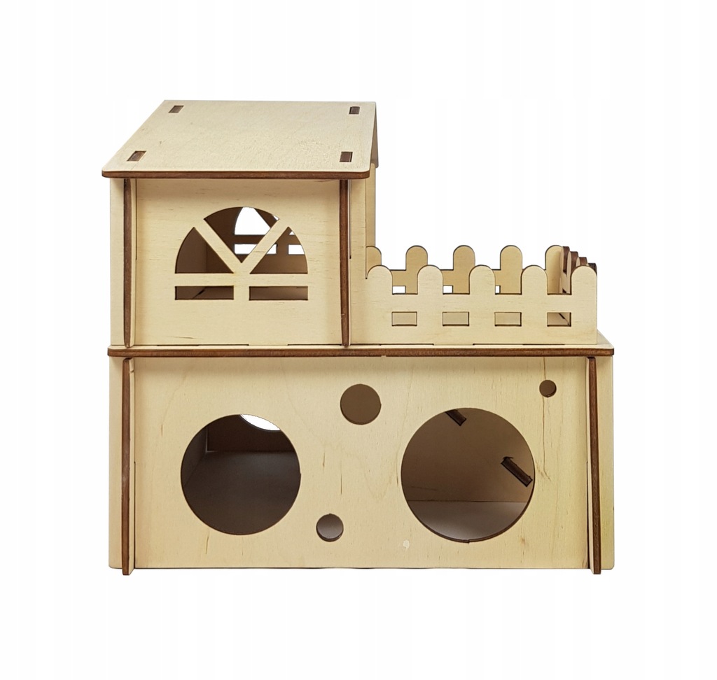 деревʼяний будиночок для хомʼяка, миші або іншого гризуна-це міцний продукт, оснащений безліччю отворів і додатковим поверхом з балконом. Ці доповнення напевно доставлять масу задоволення Вашому маленькому вихованцеві. Варто відзначити, що будиночок абсолютно безпечний для тварини.