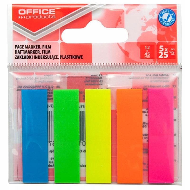 індексні вкладки OFFICE PRODUCTS, STANDARD, PP, 12x45mm, 5x25 вкладок., Підвіска, змішаний колір