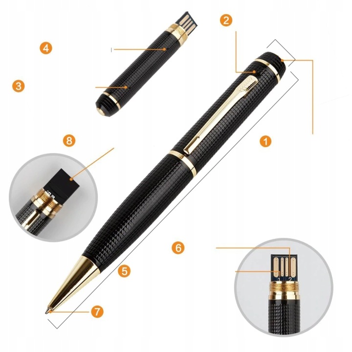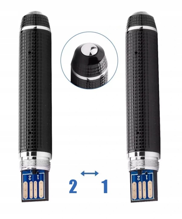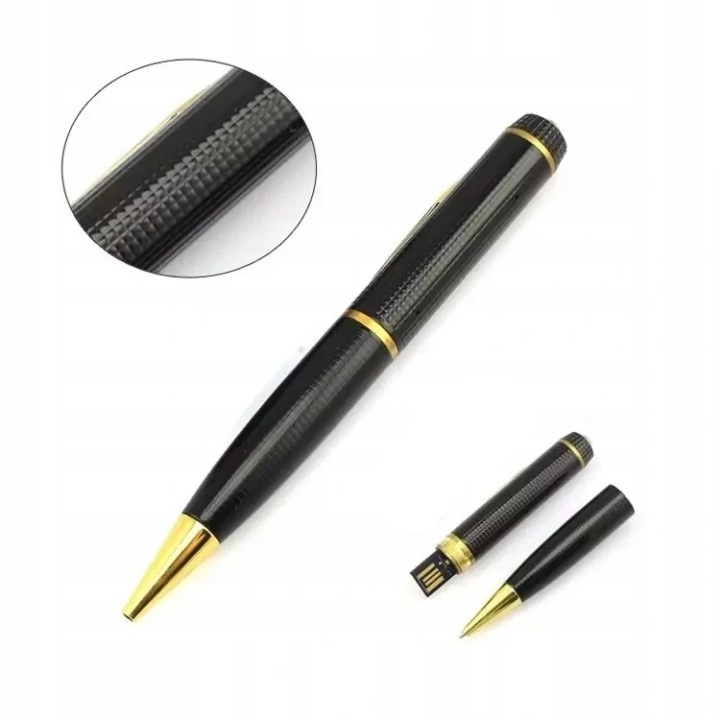 мініатюрна шпигунська камера, прихована в професійно виготовленої ручці, записує в форматі FULL HD після інтерполяції - маленька і ненавʼязлива камера для запису подій з приховування разом з опцією диктофона, запису самого аудіо звуку