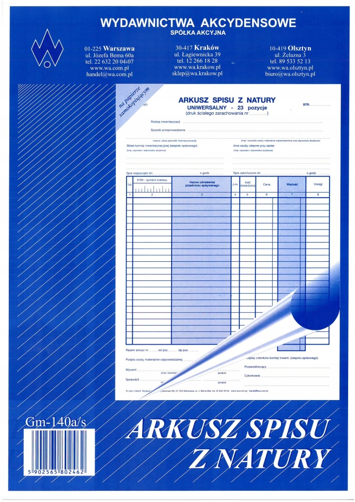 лист перепису природи Gm-140A / s універсальний 23 позиції