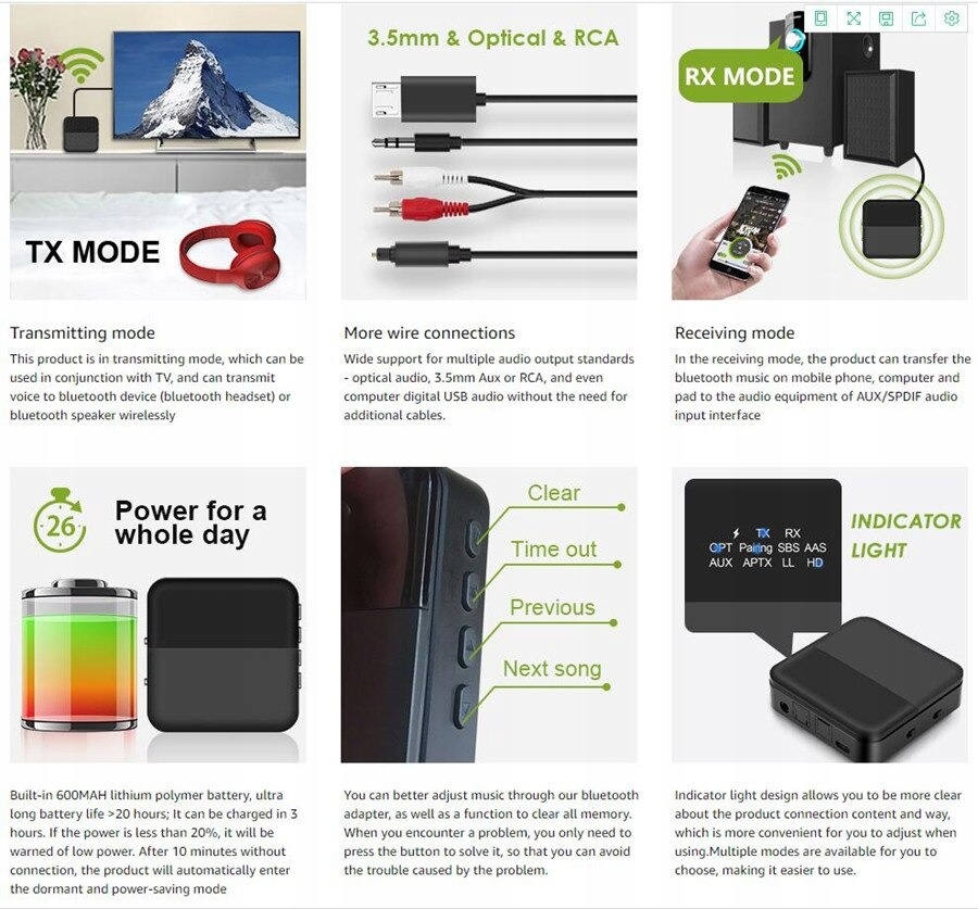 модель: BT - B20 5.0 AUX 3,5 мм + S / PDIF(Toslink)