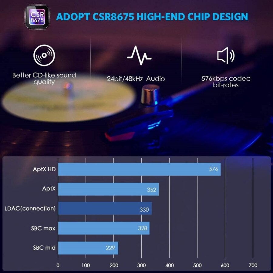 в основі адаптера знаходиться процесор DSP Qualcomm ® Kalimba™ CSR8675 , що забезпечує відмінне і стабільну якість сигналу.