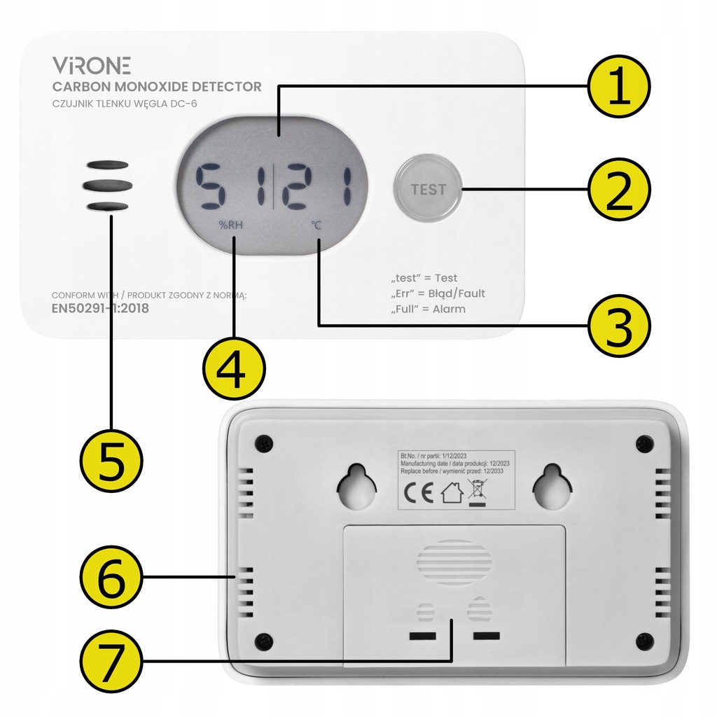пристрій призначений для безперервного моніторингу концентрації чадного газу CO (чадного газу) в повітрі, а також для виявлення та оповіщення про перевищення максимальної безпечної концентрації цього газу. Датчик не виявляє інших отруйних або легкозаймистих газів. Датчик має кнопку TEST, яка дозволяє перевірити правильність роботи датчика. Він відповідає стандарту EN 50291-1: 2018 для домашніх детекторів чадного газу.