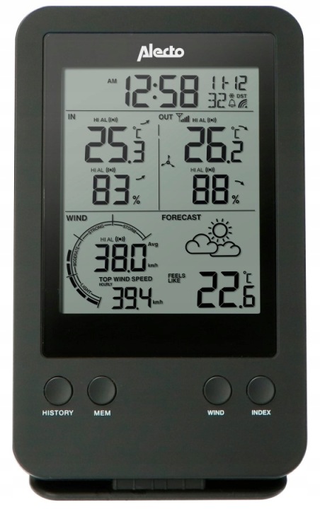 з цієї високоякісної метеостанцією WS-3400 з зовнішнім датчиком сюрпризи ніколи не будуть чекати вас в повсякденну погоду. У вас є огляд місцевої погоди в будь-який час доби. Ця метеостанція надасть вам все необхідне для хорошого місцевого прогнозу погоди. Наприклад, метеостанція вимірює швидкість вітру, температуру всередині і зовні, а також вологість всередині і зовні. Зовнішній блок, що постачається, бездротово підключається до внутрішнього блоку та незалежно вимірює температуру, вологість та швидкість вітру на відкритому повітрі.