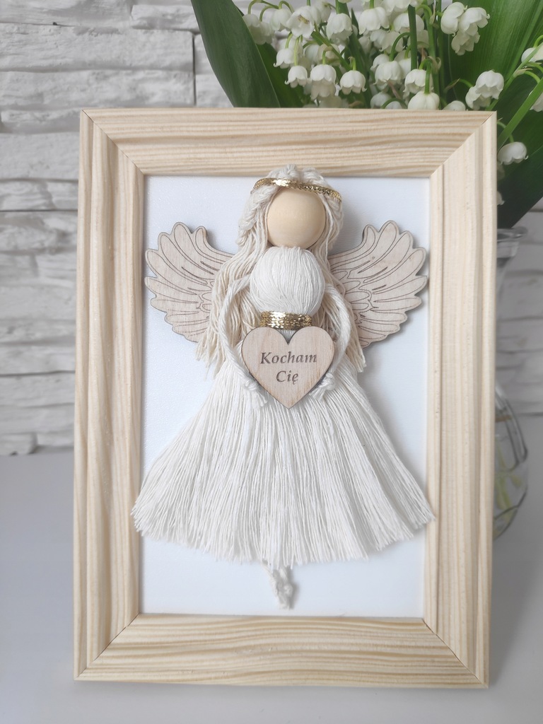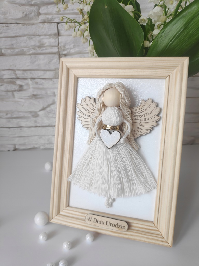 АНГЕЛ МАКРАМЕ В РАМЦІ ХРЕЩЕННЯ ПОДАРУНОК ДЕНЬ НАРОДЖЕННЯ ХРЕЩЕННЯ СУВЕНІР АНГЕЛ