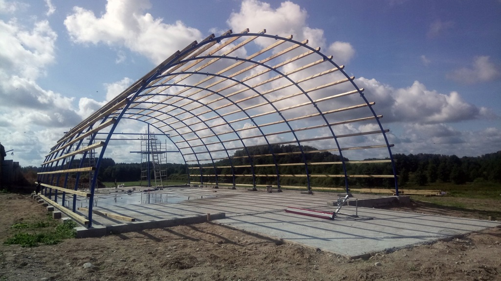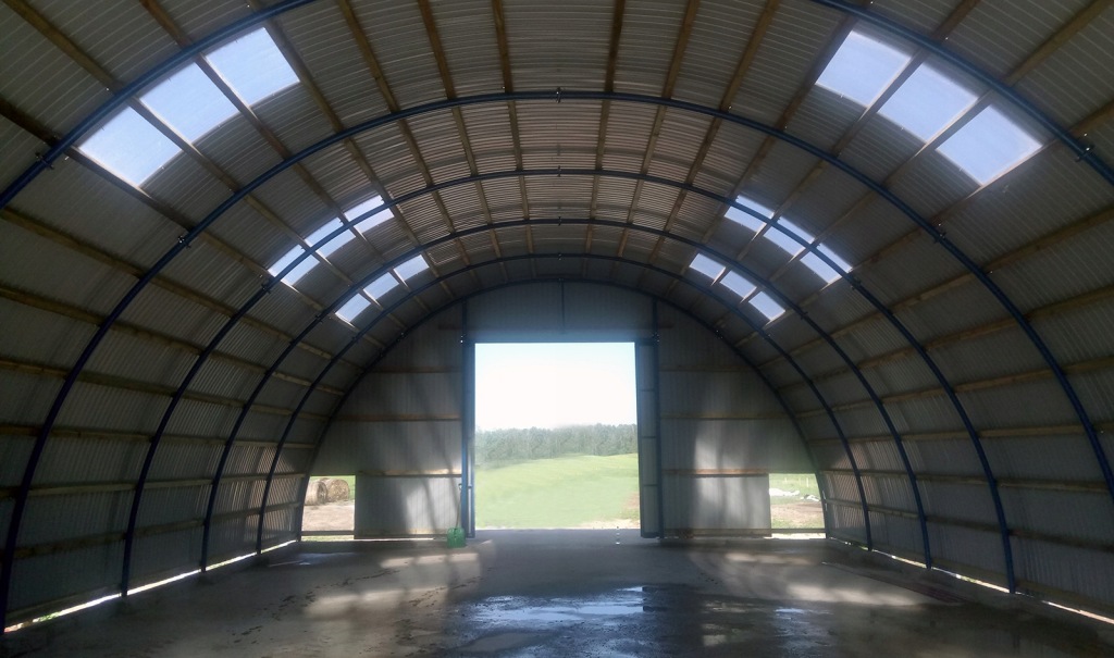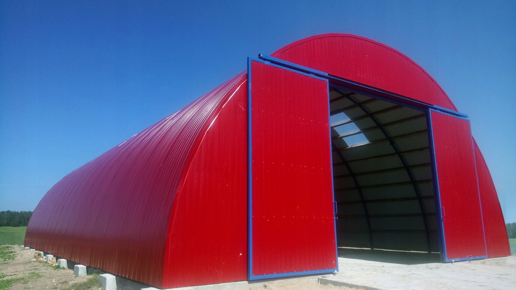 вказана ціна вказана за зал довжиною 20 м ,шириною 10, 8 м і висотою 5,5 м у верхній частині з двома розсувними воротами.Можливість вибору кольору залу без доплати.