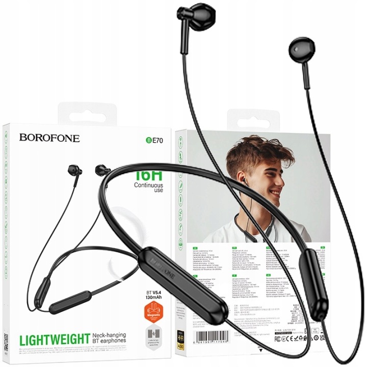 BOROFONE BE70 Light - це бездротові аудіо / навушники з технологією Bluetooth 5.4, оснащені зʼєднувальним кабелем довжиною 85 см, шийним обідком, а також магнітними корпусами, що запобігають втрату і сплутування навушників. У навушниках є мікрофон, що дозволяє здійснювати телефонні дзвінки, а також кнопки для керування музикою, регулятором гучності або телефонними дзвінками та розмовами. Навушники мають функцію Multipoint, що дозволяє підключати два мобільних пристрої одночасно і одночасно.