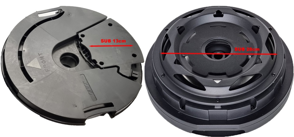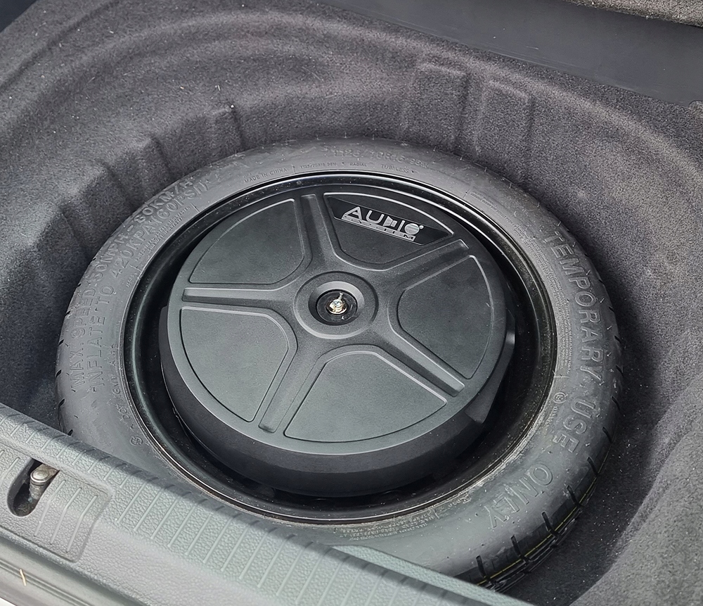 аудіосистема SW11 ACTIVE алюмінієвий жорсткий корпус-сабвуфер для внутрішньої частини запасного колеса або підʼїзної дороги.