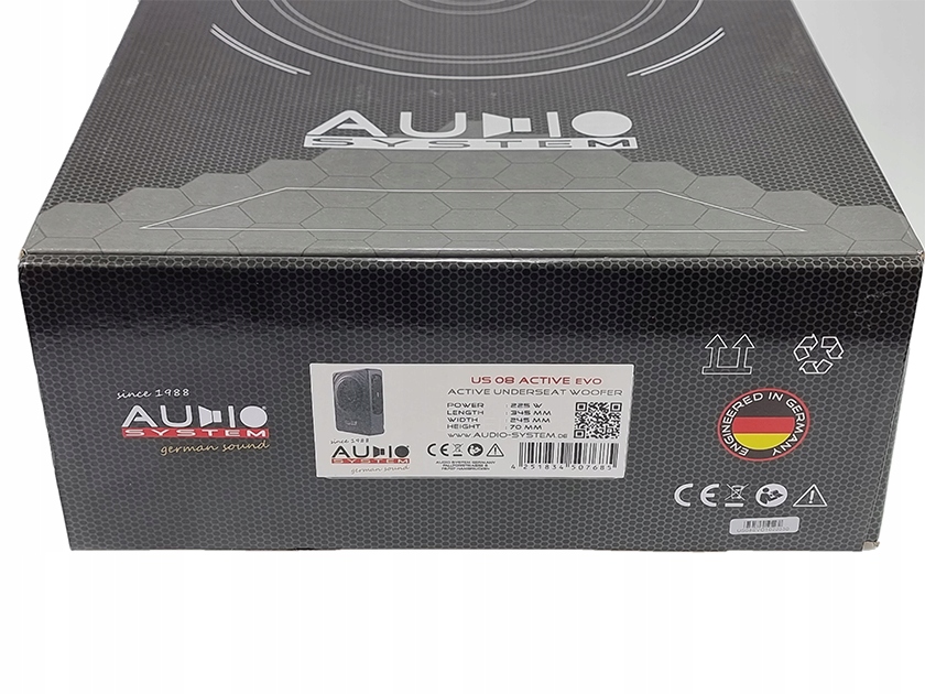 AUDIO SYSTEM US08 ACTIVE EVO-активний сабвуфер з високою потужністю і унікальним дизайном, що дозволяє грати на глибоких басах з такого невеликого корпусу!
