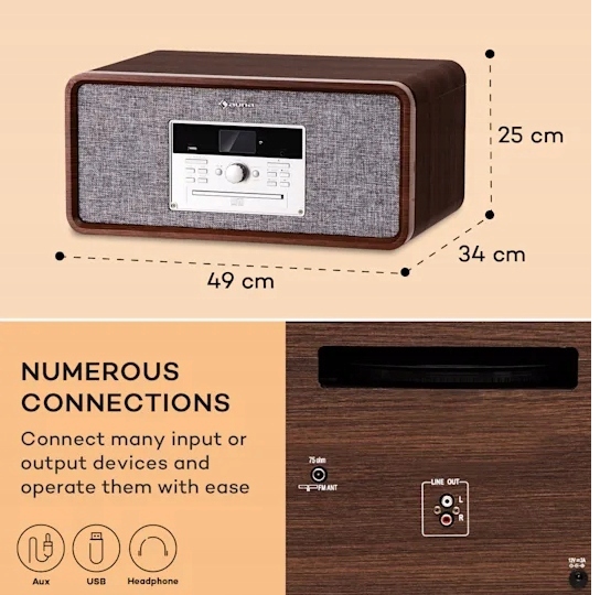 найкраще з минулого і майбутнього: стерео радіо Bella Ann бренду auna поєднує ностальгію з сучасними технологіями. Він пропонує безліч варіантів відтворення та вражає своїм елегантним дизайном.
