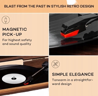 - 3 швидкості: програвач зі швидкістю відтворення 33, 45 і 78 об./min