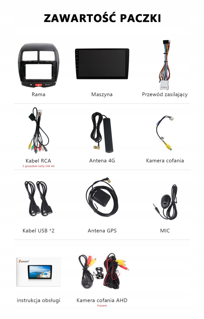 У комплект входить камера заднього виду для AHD. Кут огляду 120 градусів.