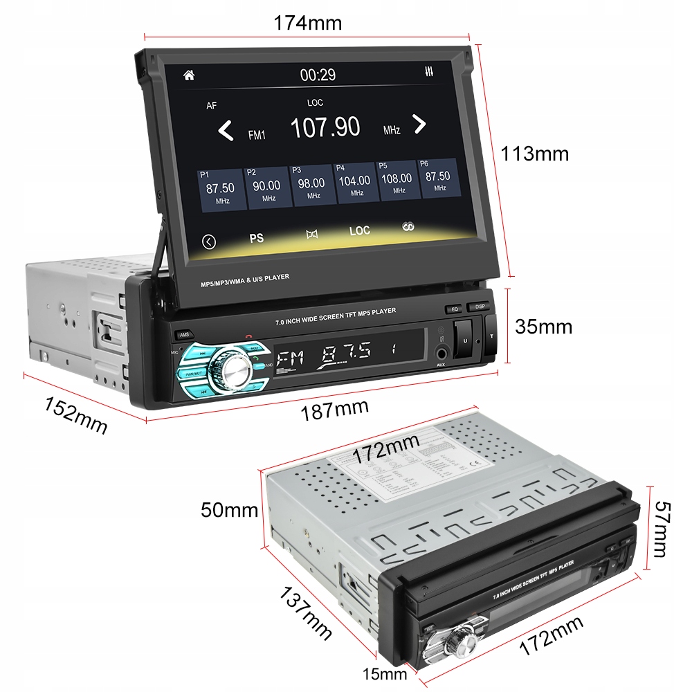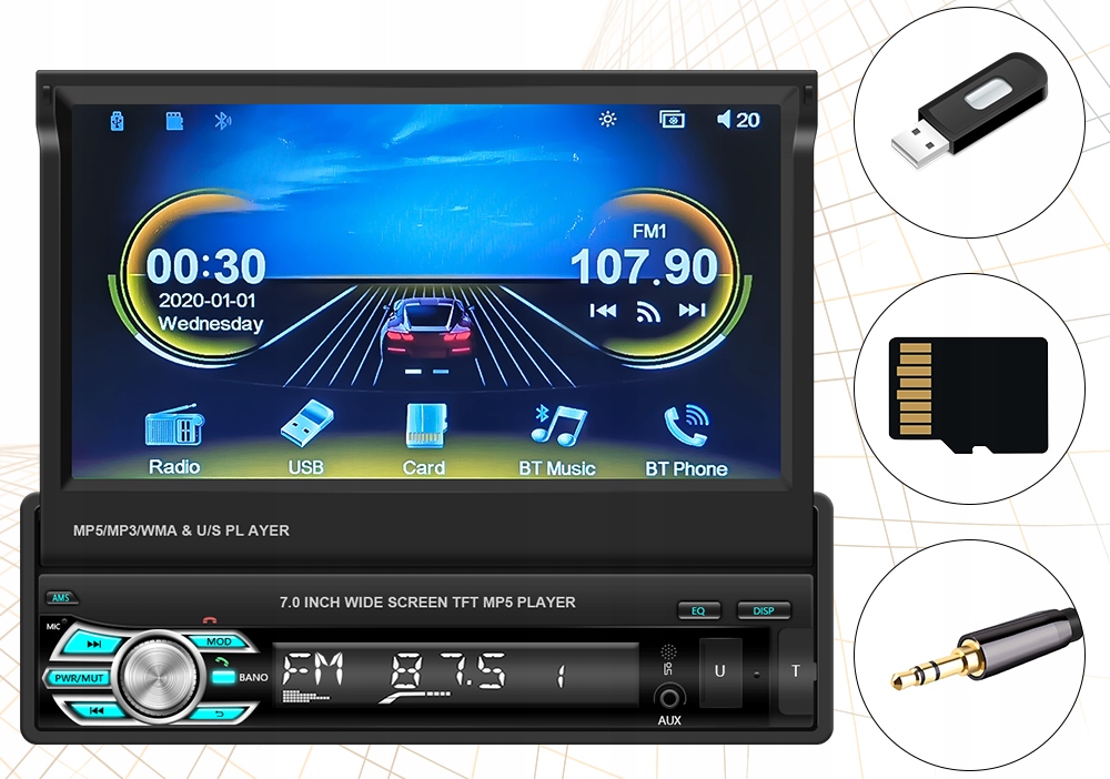 ✔️автомагнітола 1 DIN з висувним екраном 7"