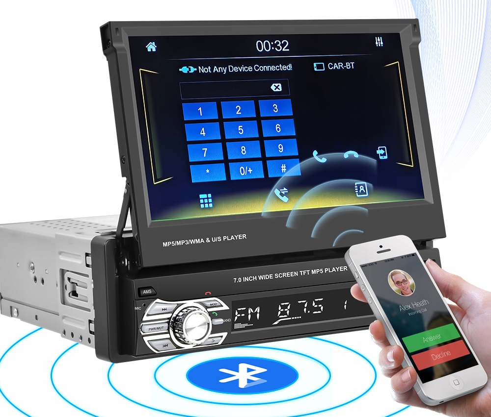 радіо має вбудований BLUETOOTH що дозволяє вести розмови під час водіння автомобіля. Звук з телефону буде чути в динаміках, а вбудований мікрофон на радіо дозволить вам вільно вести розмову. Через Bluetooth ви можете відтворювати музику зі свого мобільного телефону!