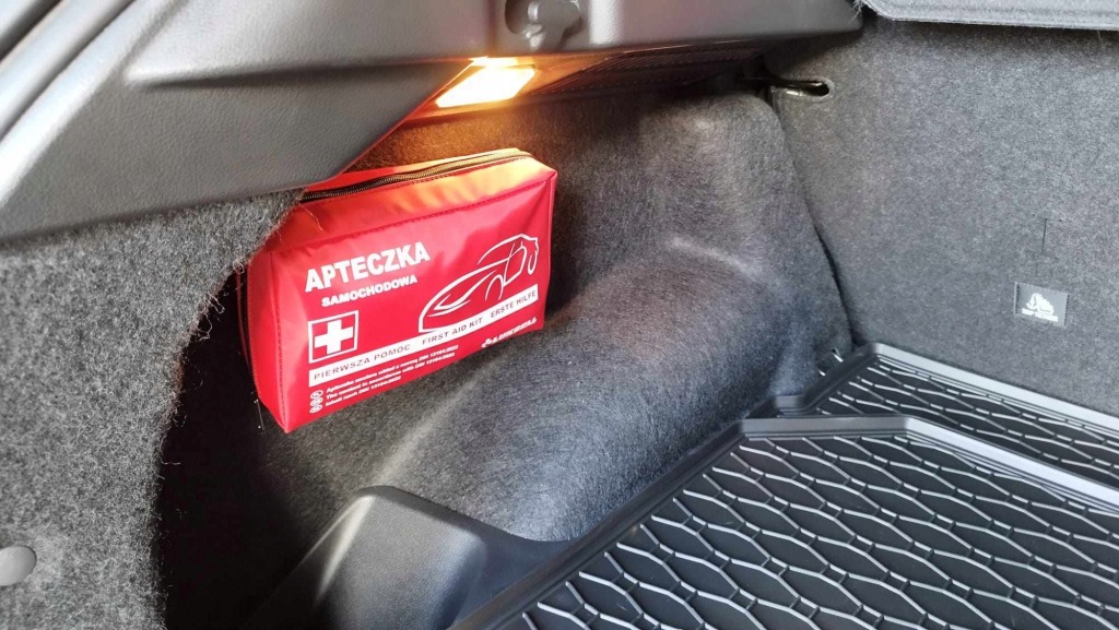 - аптечка додатково має на спині липучку для кріплення до оббивки.