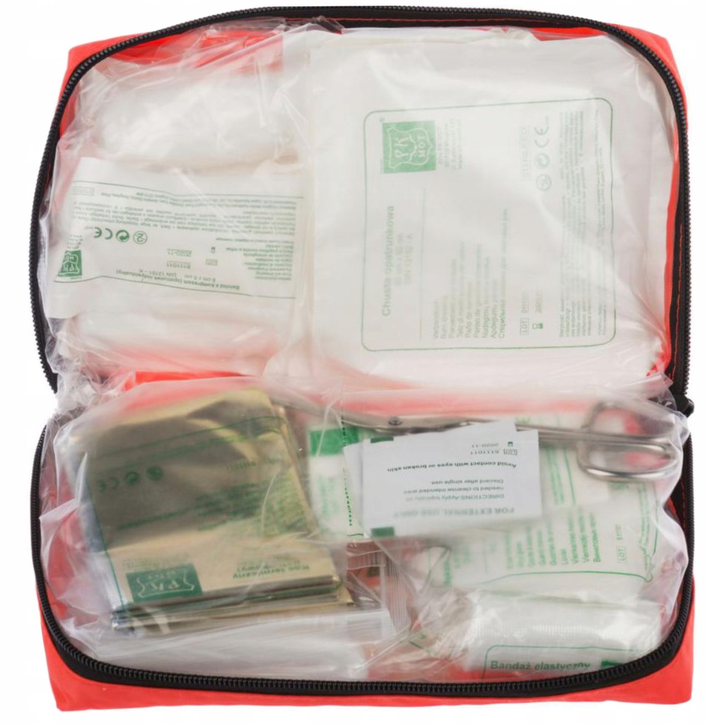 зручна аптечка першої допомоги для автомобіля, що відповідає стандарту обладнання DIN 13164 з мундштуком в комплекті. нагороджений нагородою якості 2012 року, аптечка оснащена застібкою - блискавкою і липучкою, досить аптечки для кріплення в автомобілі.