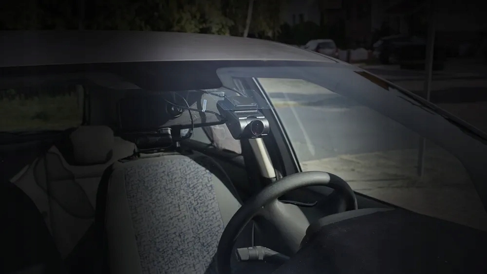 відеореєстратор дозволяє непомітно встановити на лобове скло. Завдяки цьому ми отримуємо можливість контролювати пробіг і зупинку транспортного засобу, не надто впадаючи в очі за допомогою встановленого в транспортному засобі набору автомобільних камер.