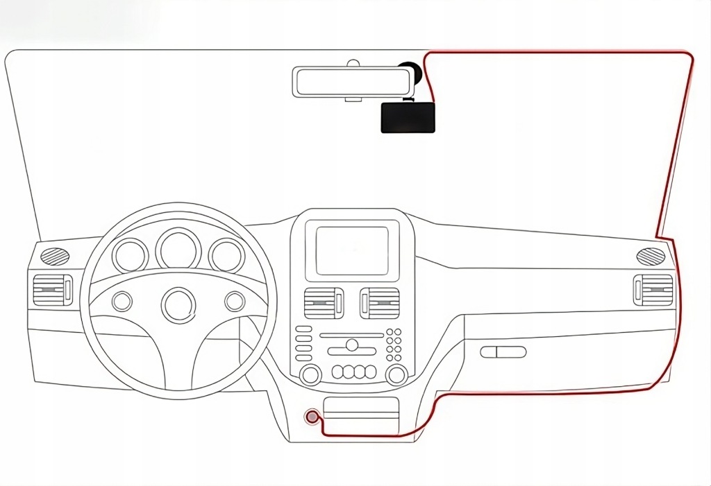 - Для активації функції ADAS необхідно відкалібрувати реєстратор. Розташуйте камеру так, щоб капот автомобіля повністю знаходився під червоною лінією.